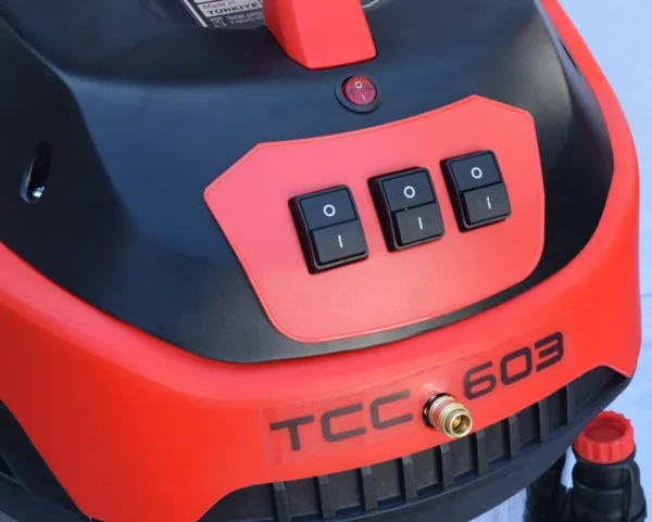 Endüstriyel gücüne rağmen TCC-603, tekerlekli şasisi ve kompakt yapısı sayesinde mobiliteyi ön planda tutar. Dar alanlarda ve araç içlerinde bile yüksek manevra kabiliyeti sergiler. Ergonomik tutuş ve taşıma detayları, uzun süreli kullanımda operatör yorgunluğunu en aza indirerek konforlu bir çalışma ortamı sunar.
