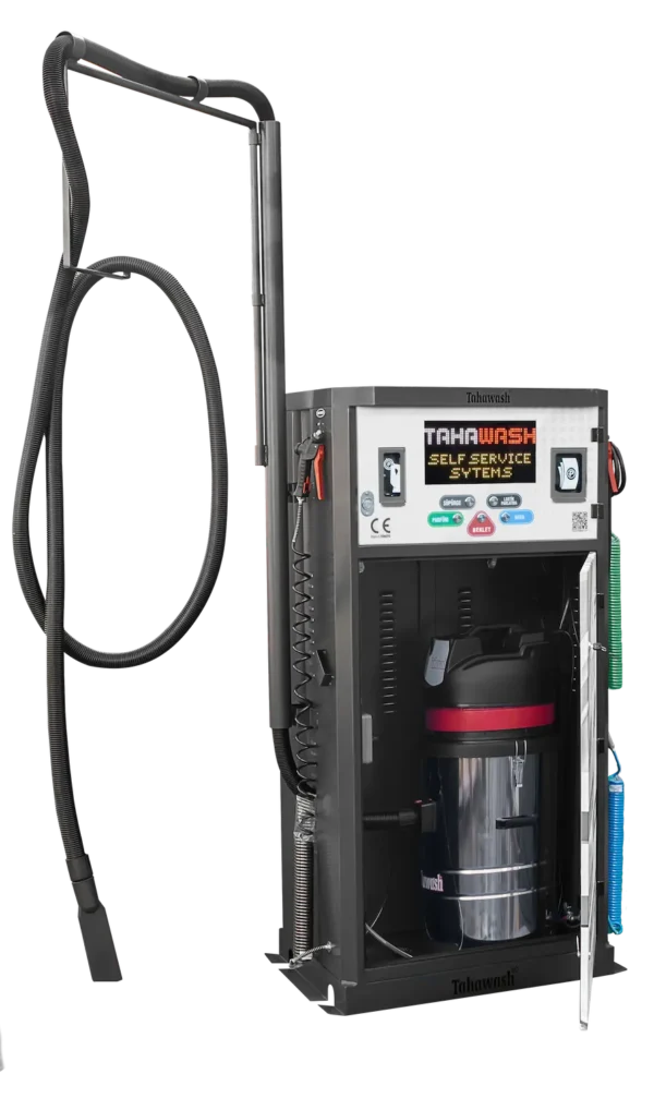 Tahawash TTJS 4+1 – P5 Ekranlı Çok Fonksiyonlu Self Servis Süpürge, özellikle ticari ve endüstriyel ortamlarda araç iç temizliğine yönelik bütünleşik ve kullanıcı odaklı bir sistem sunar. Bu cihaz, sadece güçlü bir elektrikli süpürge olmanın ötesinde, vakum, basınçlı hava üfleme, parfüm püskürtme ve lastik parlatma gibi çeşitli temel fonksiyonları tek bir ünitede birleştirir. Bu çok yönlülük, otomobil yıkama istasyonları, akaryakıt istasyonları, büyük otoparklar ve araç kiralama şirketleri gibi işletmelere, müşterilerine kapsamlı bir self servis temizlik deneyimi sunma imkanı tanır. TTJS 4+1 – P5 modeli, kullanıcının kolayca işlem yapabilmesi için tasarlanmış sezgisel bir P5 ekran arayüzüne sahiptir. Bu arayüz, seçilen fonksiyonu, kalan süreyi ve ödeme bilgilerini net bir şekilde göstererek, hizmetin şeffaflığını ve kullanım kolaylığını artırır.