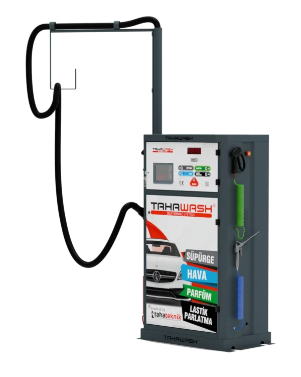 Tahawash’ın TTJS 4+1 modeli, özellikle oto yıkama istasyonları ve akaryakıt servisleri gibi yüksek müşteri sirkülasyonuna sahip işletmeler için tasarlanmış, self servis kullanım imkanı sunan bir temizlik sistemidir. Cihaz, klasik bir endüstriyel süpürge fonksiyonunun ötesinde, kullanıcılara birden fazla hizmeti tek bir noktadan sunarak işletmelerin operasyonel verimliliğini artırmayı hedefler. Temel fonksiyonları arasında güçlü vakumlama, basınçlı hava üfleme, araç içi parfümleme ve lastik parlatma gibi özellikler bulunur. Kullanıcılar, madeni para, jeton veya kağıt para gibi farklı ödeme seçenekleriyle sistemi kolayca aktive edebilir. 220V monofaze elektrik altyapısıyla uyumlu çalışması, kurulum ve entegrasyon süreçlerini basitleştirir. Dayanıklı ve paslanmaz malzemelerden üretilmiş gövdesi sayesinde dış ortam koşullarına karşı yüksek direnç gösterir. Bu yapısı, cihazın uzun ömürlü olmasını ve yoğun kullanıma dayanmasını sağlar. Ayrıca, kaçak akım ve termik röle gibi güvenlik mekanizmalarıyla donatılması, işletme sahipleri için elektrik çarpması ve yangın risklerini minimize eder. Cihaz, kullanıcı dostu paneli ve basit arayüzü sayesinde her seviyeden müşterinin rahatlıkla kullanabileceği şekilde tasarlanmıştır.