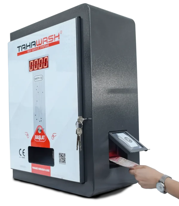 Tahawash TTPB Para Bozma Makinesi, self servis oto yıkama ve süpürge hizmetleri sunan işletmelerin çalışma saatleri dışında da kazanç sağlamasına olanak tanır. İşletme sahiplerinin müşterileriyle sürekli ilgilenme gereğini ortadan kaldırarak, müşterilerin nakit para alışverişini otomatik hale getirir. Günün her saati aktif olmayı hedefleyen işletmeler için önemli bir yardımcı olan bu makine, özellikle self servis hizmetler sunan tesislerin vazgeçilmez bir parçasıdır.